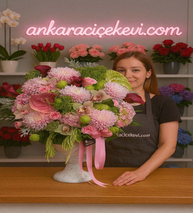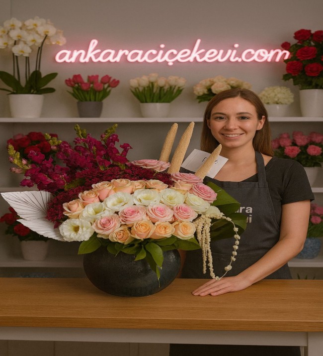 Renkli Güller İle Hazırlanan Özel Tasarım