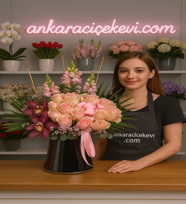Özel Tasarım güller ve beyaz Orkide